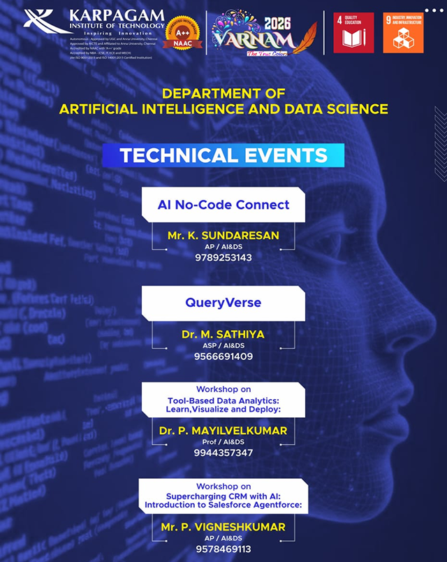 AI No-Code Connect is an interactive, multi-round event designed to introduce participants to the power of Artificial Intelligence without coding. The event blends creativity, problem-solving and innovation through engaging challenges. Participants will progress from testing their AI awareness to creating AI-powered content and finally building intelligent, no-code solutions. Using popular AI tools, the event empowers students to design posters, videos, audio content, apps, and data visualizations—demonstrating how AI and no-code platforms are transforming digital creation and decision-making.